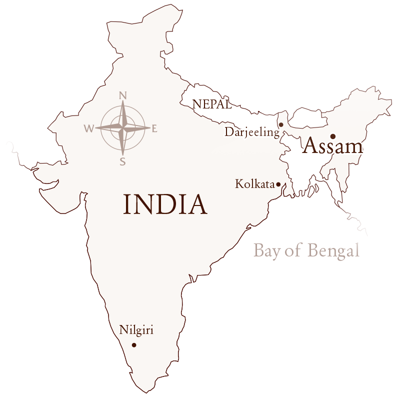 甘い大地の香りと濃厚な風味で知られるインドを代表する紅茶産地アッサム。豊かな大地を思わせる自然な甘みと力強いコクを楽しめる、ミルクティー向きの紅茶を多く産する地域です。茶葉をつぶし裂き丸めるCTC製法(Crush, Tear and Curlの略)の発祥地で、インド最大の生産量を誇ります。旬は夏。黄金に輝く新芽と、甘くふくよかな味わいが特徴です。