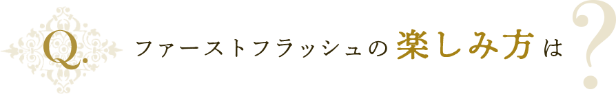 ダージリンでは、春、夏、秋と年に3回の旬を迎えます。ファーストフラッシュは春摘みの紅茶を指し、その年の初めに摘まれる、いわば「ダージリンの新茶」です。茶葉が青々としていて、実際にお茶をいれてみると、カップを満たすのは輝くような黄金色。ひとくち飲めば、若葉のようにみずみずしい風味が広がり、初めて召し上がる方は「緑茶に似た爽やかさ」と驚かれることも。一般的にイメージされる、紅茶のオレンジ色やずっしりと重厚感のある味わいとは、ひと味もふた味も違った魅力があります。