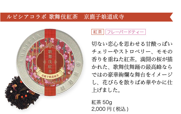 お茶を中心とした多様な食文化やライフスタイルを提案しているルピシアと歌舞伎がコラボレーション!華やかな紅茶が出来ました。