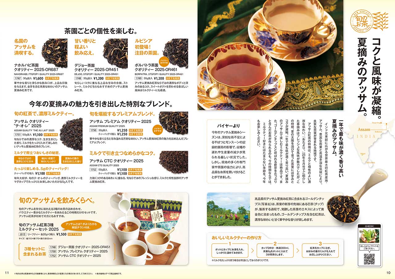 アッサム紅茶の特徴は、ミルクと相性のよい濃厚な味わい。『おたより。』25年6月号でご紹介した春摘みはフレッシュな風味が魅力でしたが、この時期、夏の太陽を浴びて育った茶葉には甘みとコクが凝縮。一年で最も味が濃く香り高い、夏摘みのアッサムで楽しむミルクティーは絶品です。