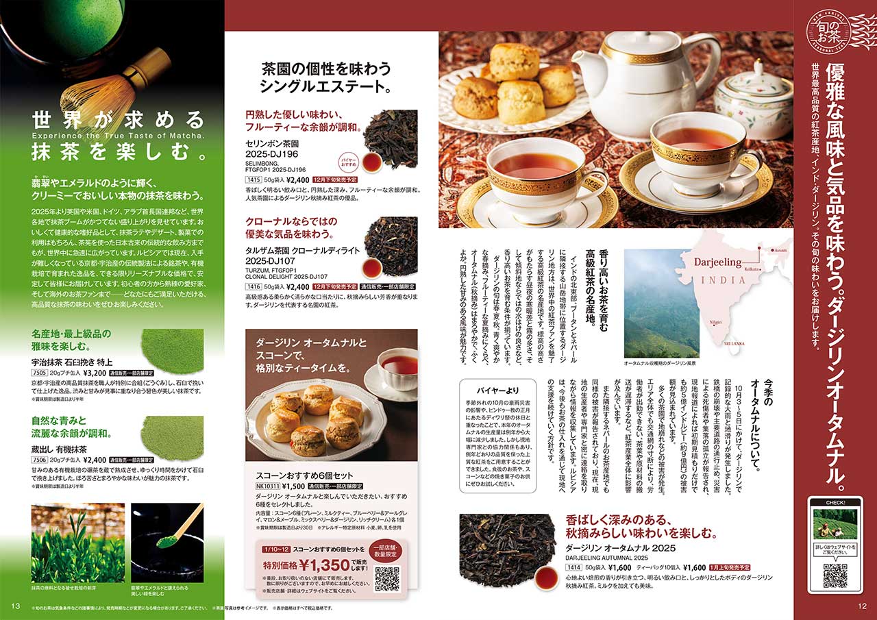 ダージリンの旬は春・夏・秋。青く爽やかな春摘み、フルーティーな夏摘みにくらべ、オータムナル(秋摘み)はまろやかで、ふくよか。円熟した甘みのある風味が魅力です。