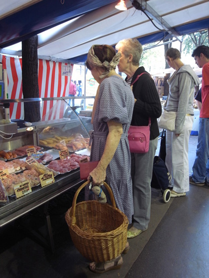 マルシェ開催日はかごバッグをもったお年寄りをよく見かけます。