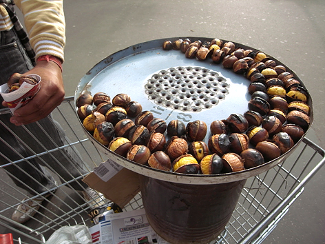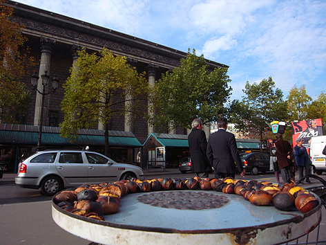 街角で焼き栗が売られていました。焼き栗は、パリの冬の風物。「Chaud les marrons!(ショーレマロン=熱い栗だよ!)」のかけ声と共に、おじさんが、栗を焼きながら売っています。
