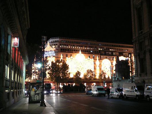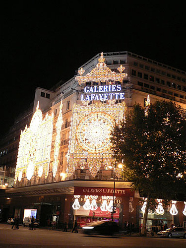 オペラ座(ガルニエ宮)の側にある、大手老舗百貨店、ギャラリー・ラファイエット(Galeries Lafayette)で、クリスマスイルミネーションの点灯式が行われ、きらっきらになってました。