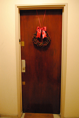 Maiががんばって作ったお迎えのリースです。大きなリボンがかわいいーーー!!!
