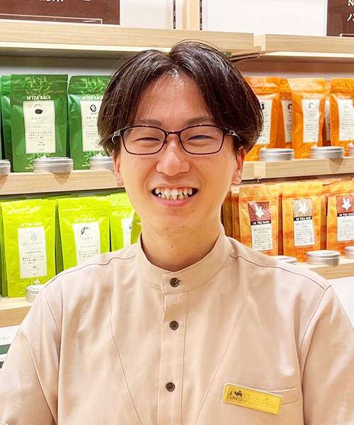 前職は異業界である放送関係の仕事をしており、新しい分野に挑戦したいと転職活動をしていました。その中でルピシアの求人を見つけ、接客スキルを身につけることや、お茶という奥深い世界に触れることで自分の考え方の幅が広がるのではないかと思い、入社を決めました。