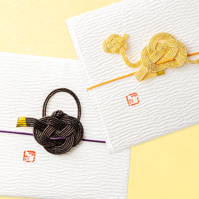 真結び/固く結ばれ、ほどけにくいため、弔事や災害見舞いなど「二度と繰り返したくない」場面で使用