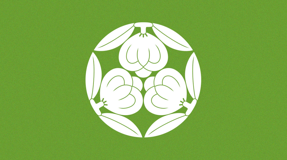 家紋「三つ茶の実」。由来は明らかではないが、茶が高貴な薬として日本にもたらされたことから、その長寿などの効用にあやかったのではないかといわれている。