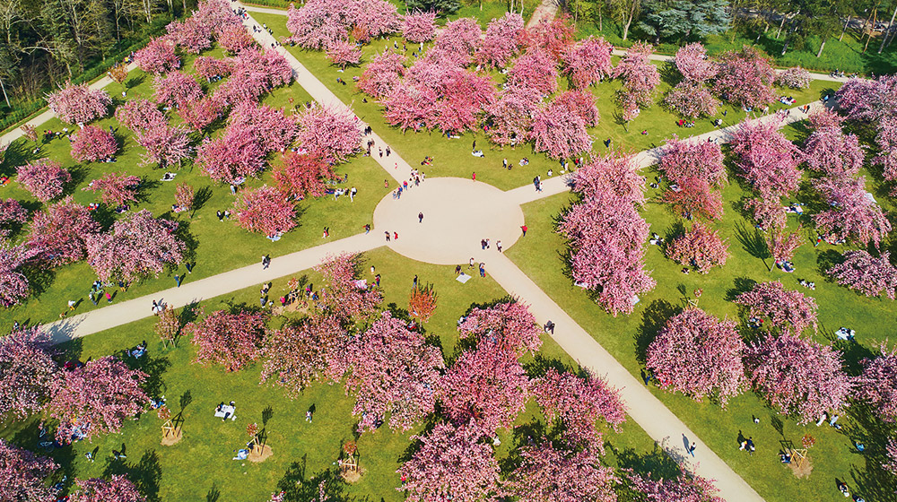八重桜など約100本が植えられているソー公園は、パリから南に10㎞ほどの位置にあり、ヴェルサイユ宮殿の庭園も設計したル・ノートルが手掛けたことでも知られています。
