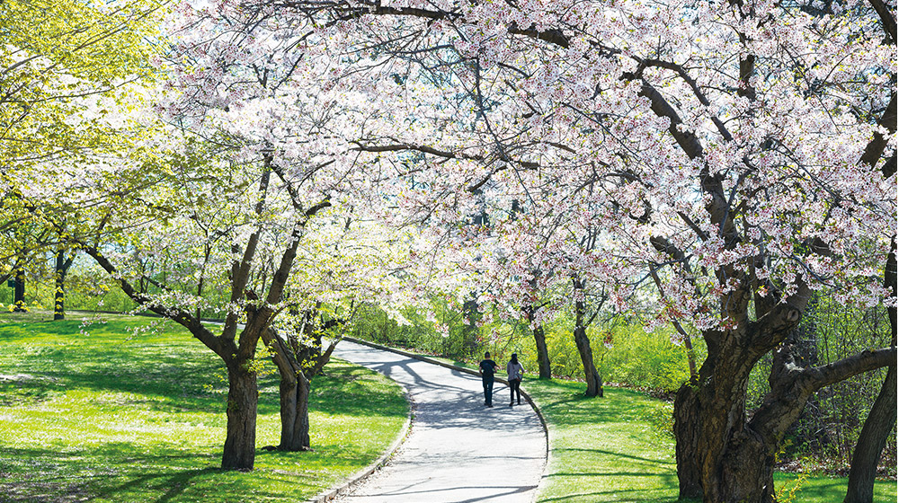 こうした歴史を伝えているのが、トロント市内最大の公園ハイパークです。ハイパークには桜並木道もあり、4月下旬から5月初旬にかけて、輝く若葉と桜の花が心なごませる競演を繰り広げます。